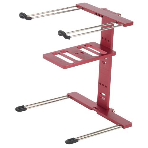 The Uberstand laptop stand is the perfect travel companion to your laptop. An essential tool for the traveling DJ or musician, the Uberstand creates a friendly work space for performing. Unfolded, its striking industrial design comes to life and safely elevates your laptop above your work space while providing a specially crafted shelf for your ScratchAmp or external hard-drive. Folds up easily for your next performance.