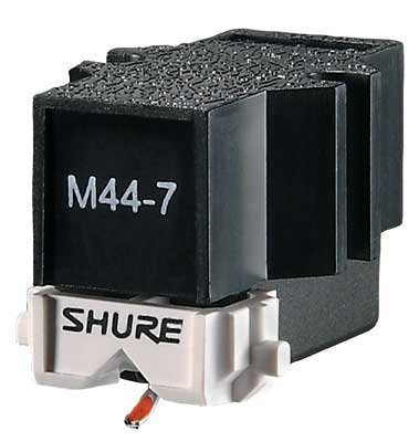 - Combining the Shure unique wide-diameter Type S cantilever with a tracking force of 1.5 to 3.0 grams, the M44-7's rugged construction is highly durable, but will not unduly wear your vinyl. With a 9.5 mV output, the M44-7 produces powerful, resonant sound.